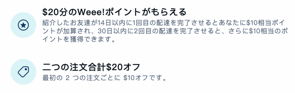 Weee!には「友達紹介制度」があって、めちゃくちゃお得です。